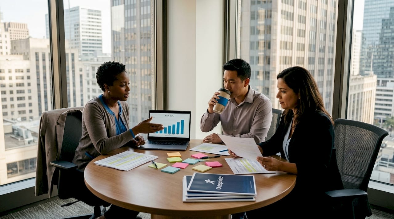 Outsprinter's goal planner breaks annual targets into weekly milestones, making ambitious objectives feel achievable through incremental progress tracking. AI recommendations adjust milestone targets based on actual velocity, preventing the demoralization that comes from unrealistic expectations. This approach keeps teams motivated and aligned without the micromanagement that erodes trust.