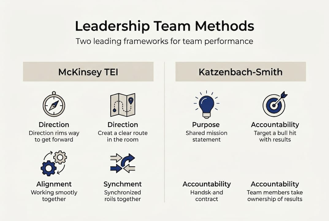 Pro Tip: Run the McKinsey TEI for a quantitative baseline, then use Katzenbach-Smith to guide the qualitative development work. Together, they cover both the diagnostic and the developmental dimensions of team health.