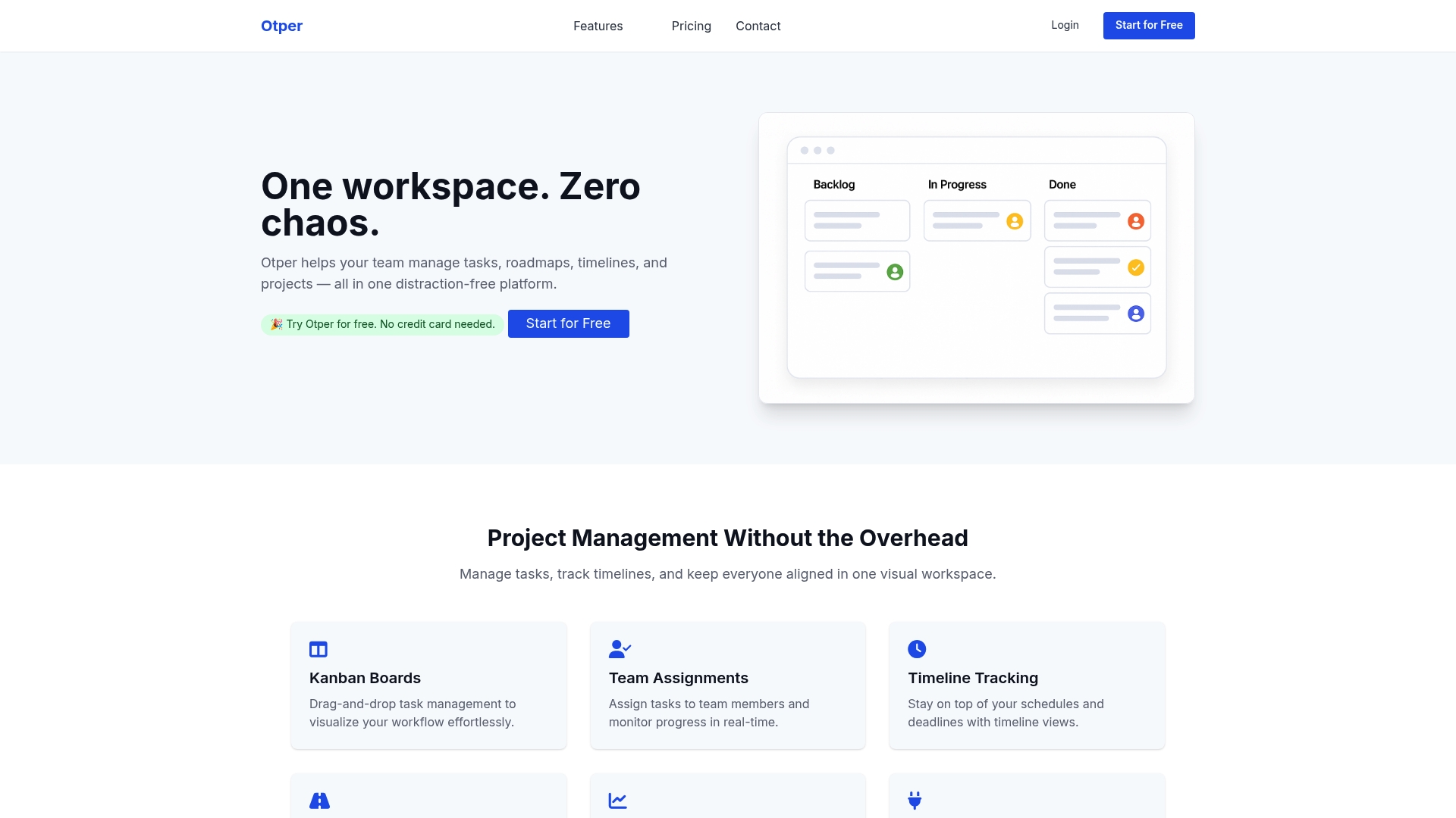 Otper is an all in one project management platform built for teams that need visual clarity and fewer tool handoffs. It combines Kanban Boards, Timeline Tracking, and Product Roadmaps in a single workspace so your team sees work, deadlines, and goals together.
