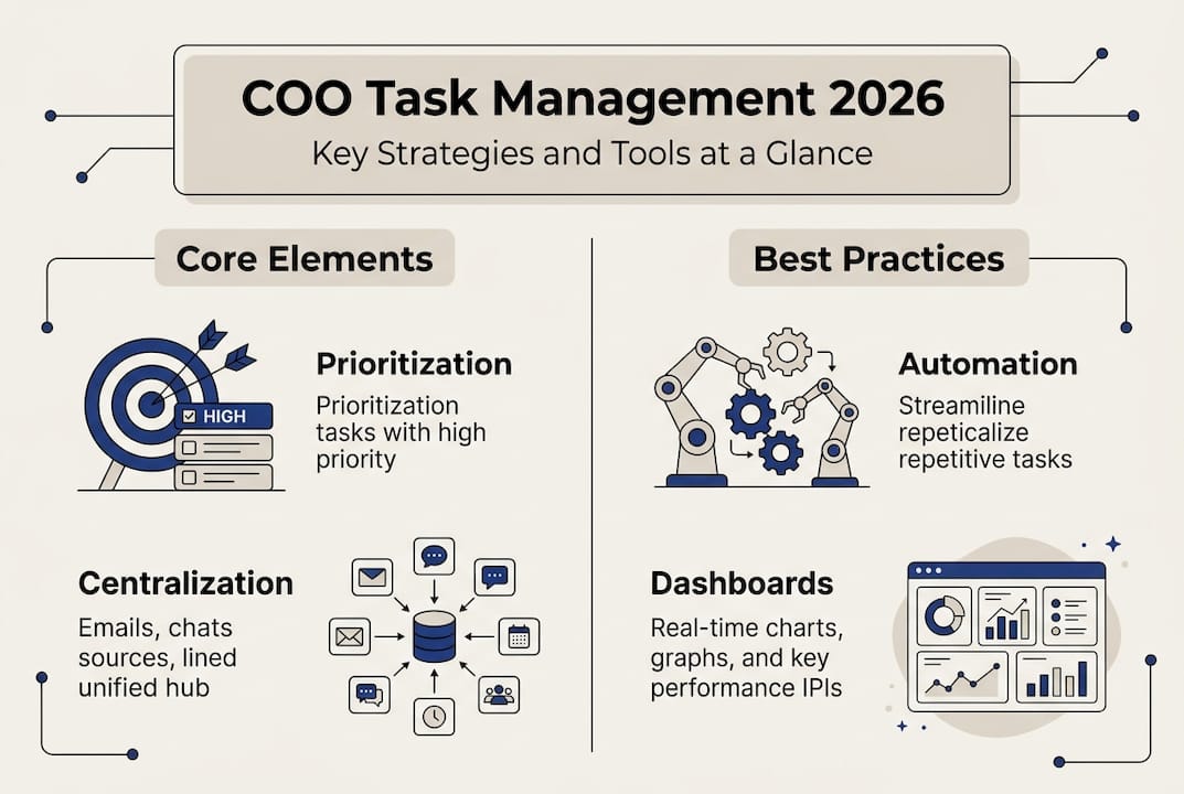 Managing complex operations across departments demands more than strategic vision. COOs who master task management unlock operational clarity that transforms scattered efforts into coordinated execution. While many leaders focus on high-level strategy, the real competitive advantage lies in how effectively you coordinate daily tasks across teams. This guide reveals practical task management strategies that drive measurable productivity gains and streamline operations for COOs leading mid to large organizations in 2026.
