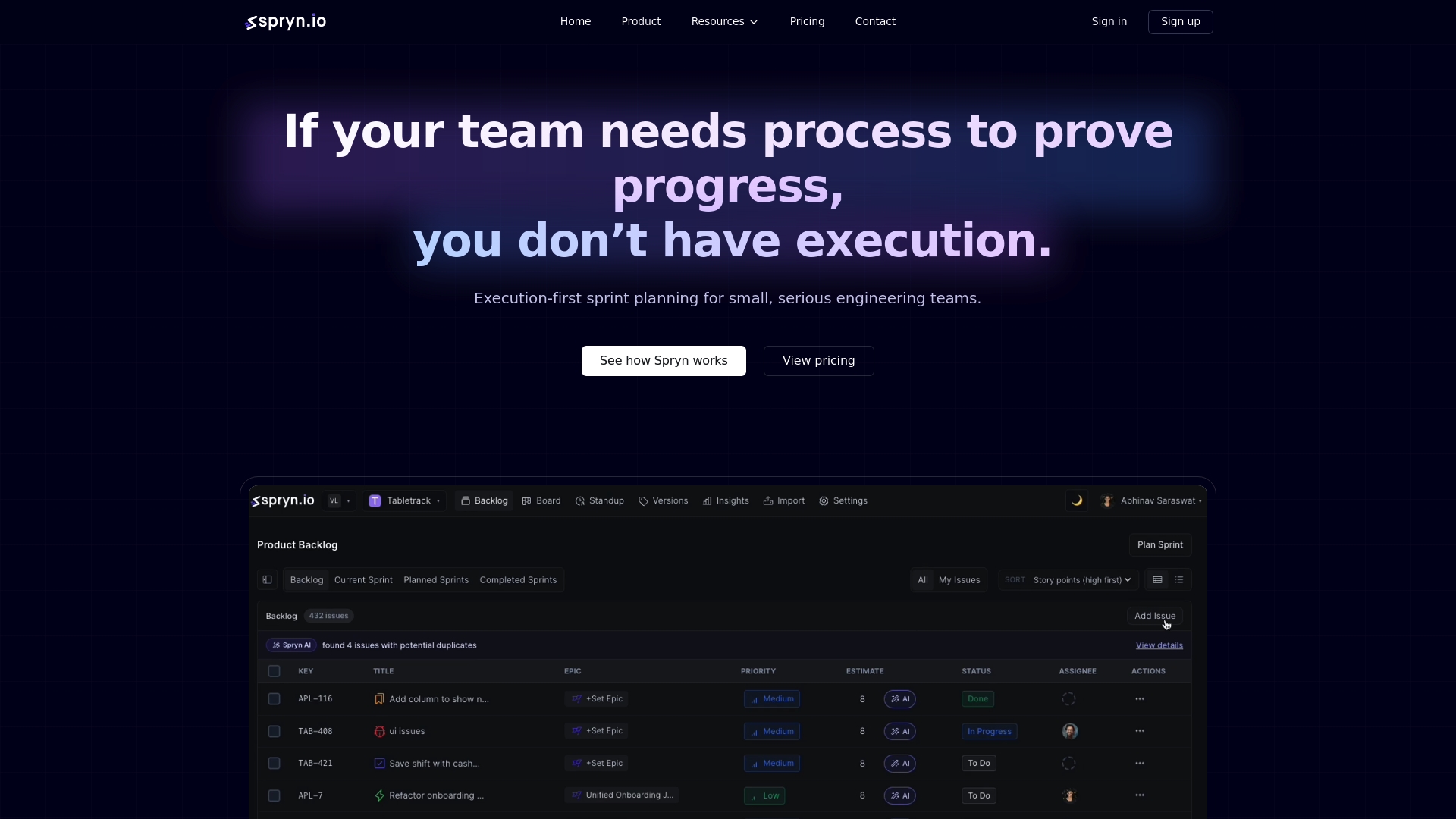 Spryn focuses on fast, execution first sprint planning for small engineering teams that value momentum over process. It delivers clear ownership, scope visibility, and AI assisted planning while avoiding ceremony and reporting overhead.