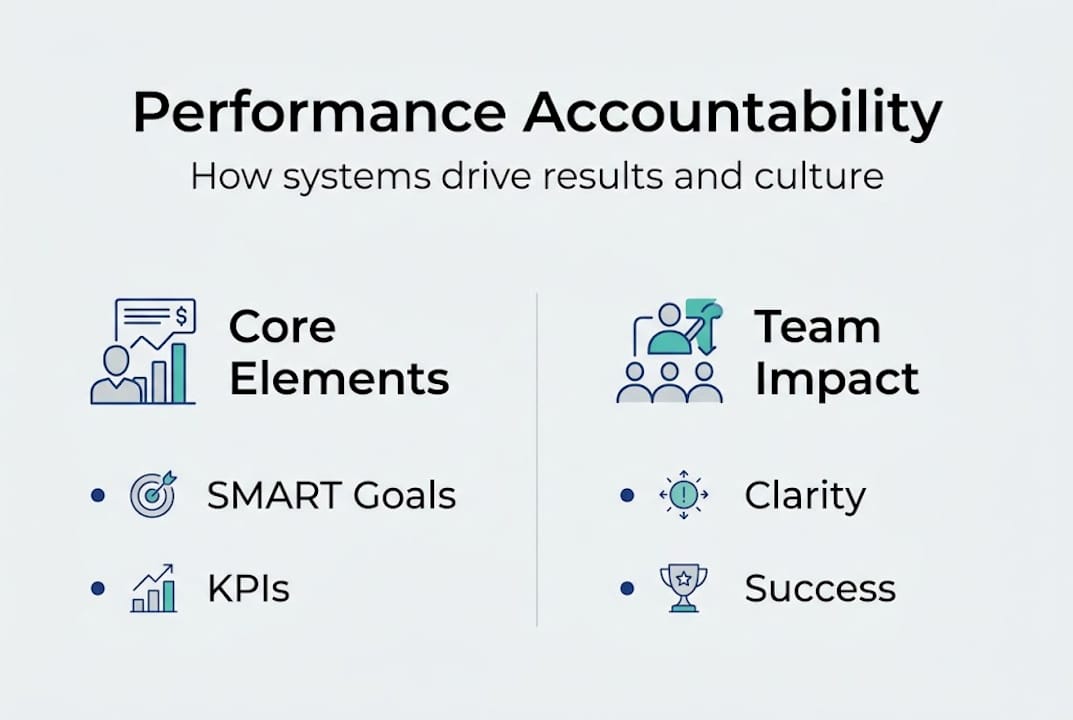 | Accountability is systemic | Structured accountability connects clear goals, KPIs, and outcomes, not just blame. |