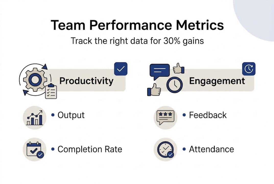 Not all metrics are equal. Tracking the wrong ones creates reporting overhead without improving anything. The goal is to select a focused set of measures that connect daily team activity to strategic outcomes. Empirical benchmarks show up to 30% productivity gains through structured tracking habits, and bonus incentives tied to tracked metrics boost non-routine team performance significantly.